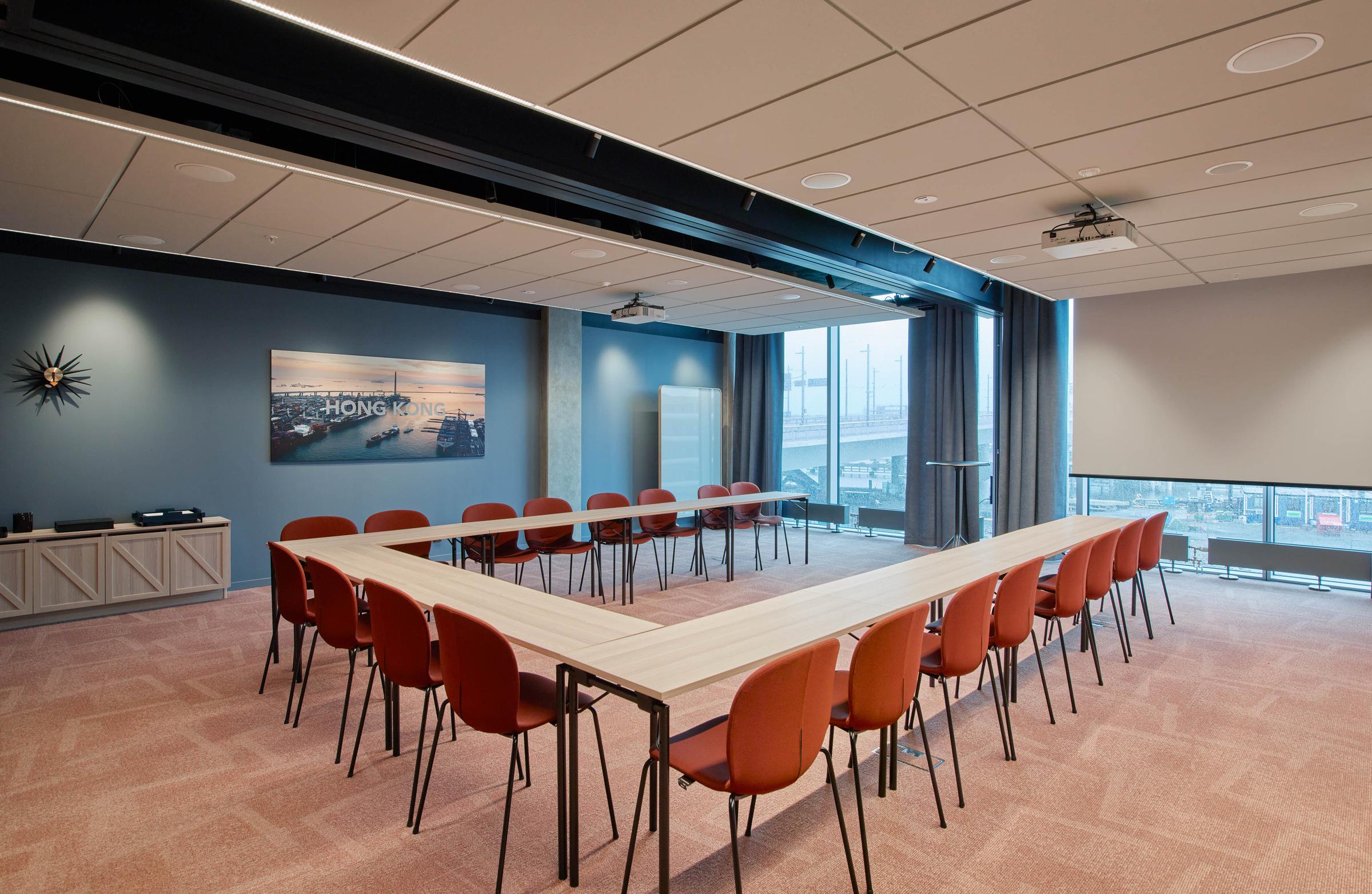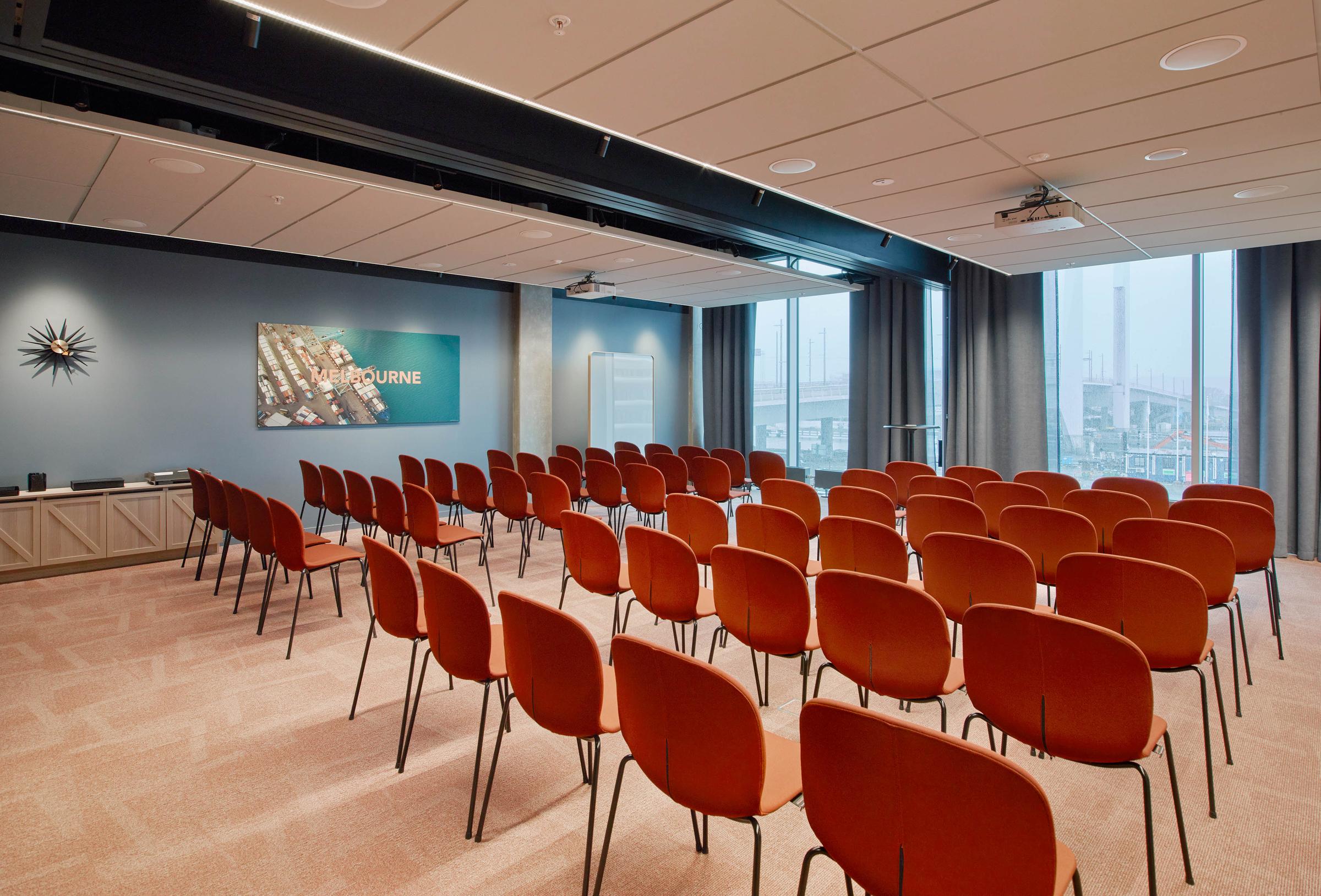 Our largest meeting room, The Grand Container, is one of our hotel’s many gems. It has a ceiling height of 6 metres, a container-inspired interior design and can accommodate 900 seated and 1,000 standing guests.