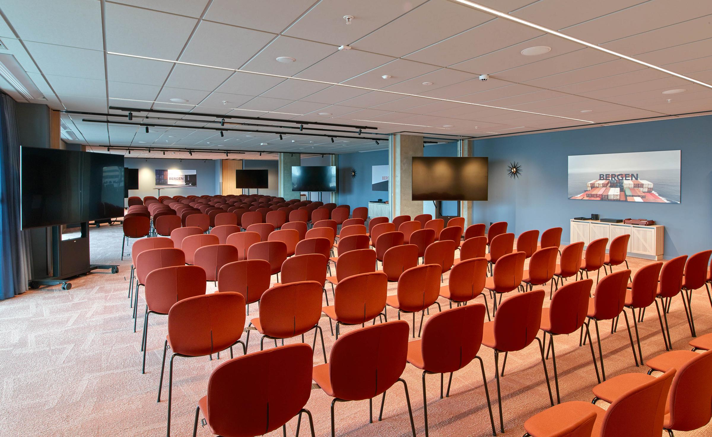 The Grand Container can be configured for different functions and sizes thanks to movable walls and lighting solutions. The large breakout spaces and easy access to the bar, restaurant, café, lobby and cloakrooms allow maximum opportunities for configuring and adapting the space according to customer preference.